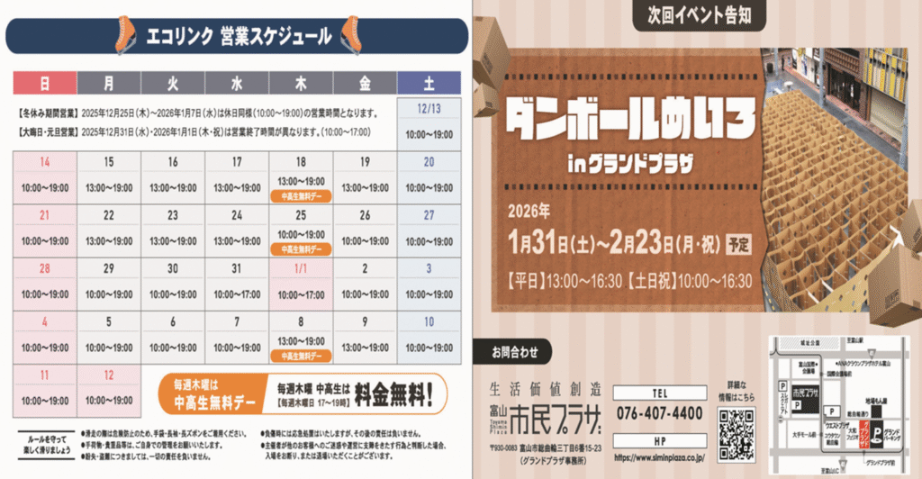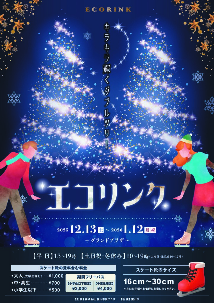 🎉 冬の恒例イベント「エコリンク」開催! 今年もグランドプラザに、スケートリンクが登場します。