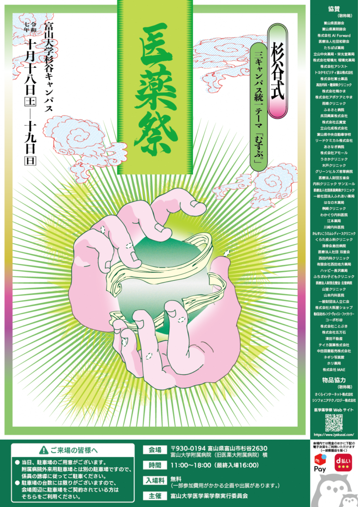 富山大学杉谷キャンパスで毎年10月に開催される大学祭「医学薬学祭」。