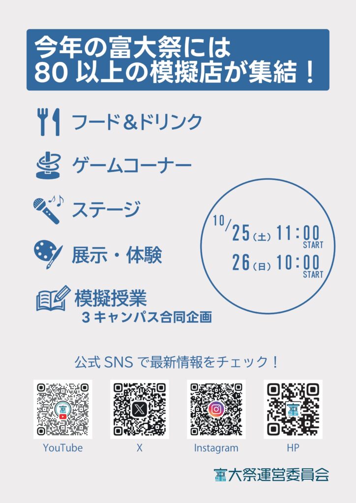 これら3つのキャンパスの大学祭をまとめて「富山大学祭」と呼んでいます。