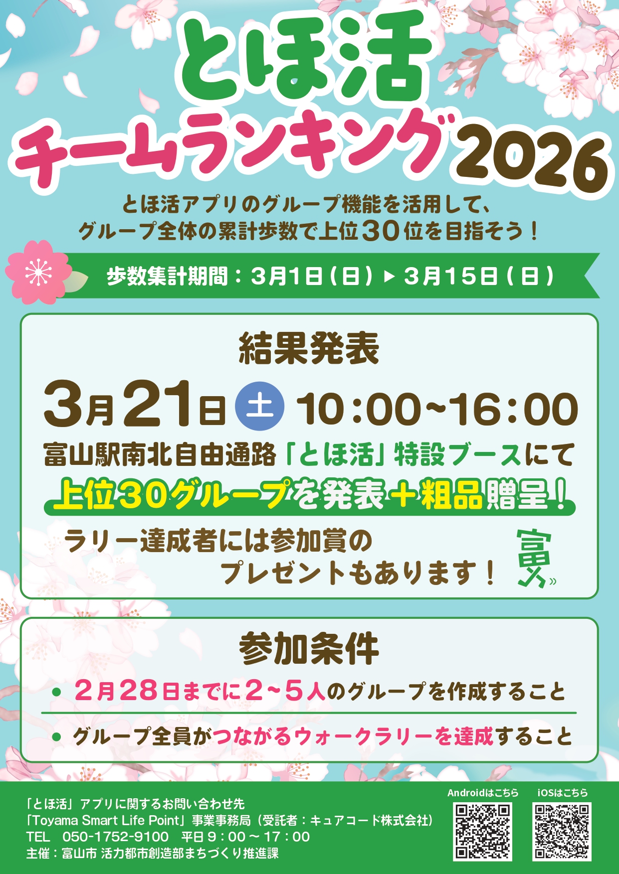 「とほ活」アプリでグループを作成し、期間内のグループ合計歩数をカウントする 「とほ活チームランキング2026」 を開催します!
